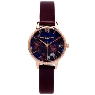 【Olivia Burton】愛戀紫色花朵皮革錶帶手錶-花朵面/30mm(OB16SP10)