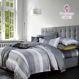【Prawear 巴麗維亞】吸溼排汗專利天絲條紋六件式兩用被床罩組都市密碼(加大)