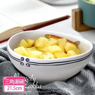 【Homely Zakka】創意Lovely fish系列陶瓷餐具_8.25吋三角湯碗21.5cm(飯碗 湯碗 餐具 餐碗 盤子 器皿)