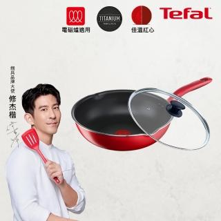 【Tefal 特福】全新鈦升級-美食家鈦極系列28CM萬用型不沾鍋深平底鍋+玻璃蓋(電磁爐適用)