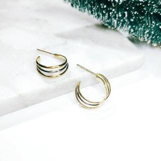 【Eli Jewelry】義大利進口14K金歐美個性雙色大C型多層次黃金耳環(附金飾保證卡 重0.69錢)
