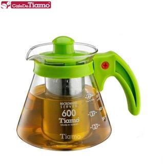 【Tiamo】兩用耐熱玻璃壺-附不鏽鋼濾網 600cc-綠色(HG2216G)