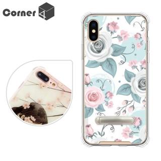 【Corner4】iPhone XS Max 6.5吋四角防摔立架手機殼(童話玫瑰)