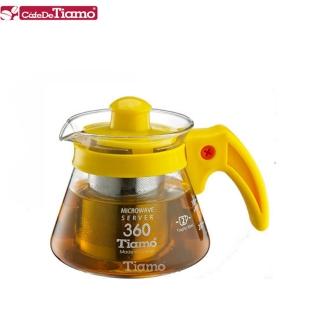 【Tiamo】兩用耐熱玻璃壺-附不鏽鋼濾網 360cc-黃色(HG2215Y)