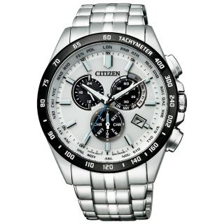 【CITIZEN 星辰】穿越時空光動能電波萬年曆計時男錶-銀x白/43mm(CB5874-90A)