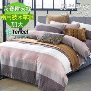 【ASHLYNA 愛希琳娜】100%天絲條紋六件式兩用被床罩組時尚先生咖(加大)