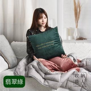 【收納職人】北歐ins燙金輕奢絨抱枕被/兩用抱枕/多功能抱枕毯子_翡翠綠
