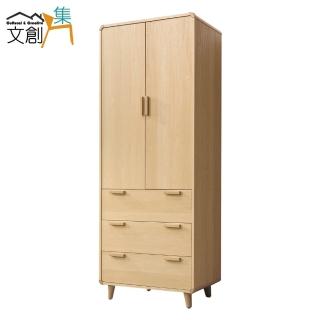 【文創集】奧皮斯 現代2.7尺二門三抽衣櫃/收納櫃(吊衣桿+開放層格)
