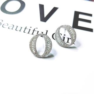 【I JEWELRY】高級手工純銀訂製系列 歐美流行英文O字母頂級鋯石純銀耳環(附純銀保證卡 精美禮物包裝)