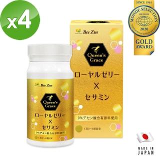 【BeeZin 康萃】日本原裝進口9%蜂王乳+芝麻膜衣錠x4瓶(60錠/瓶)