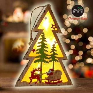 【摩達客】木質製彩繪聖誕樹造型LED夜燈擺飾(麋鹿雪車款/電池燈)