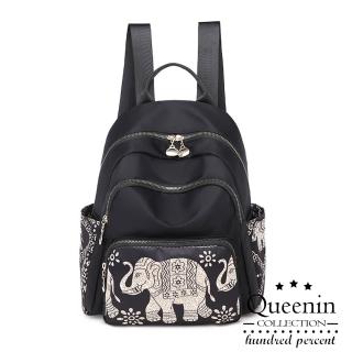 【DF Queenin】異國圖騰防潑水多隔層牛津布後背包-共3色