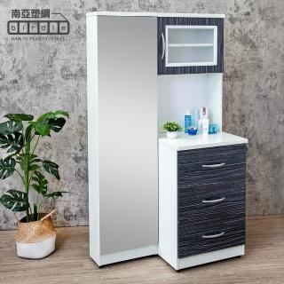 【南亞塑鋼】3.3尺塑鋼收納立鏡櫃+化妝台組(不含椅-鐵刀木色)