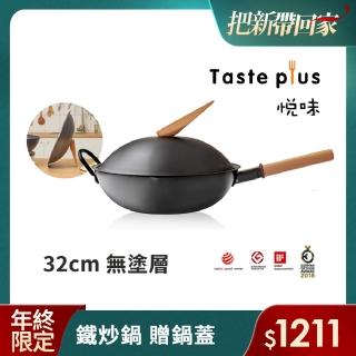 【Taste Plus】日系悅味 中式中華炒鍋 鐵鍋 32cm IH全對應設計(贈原廠 可立式鍋蓋)