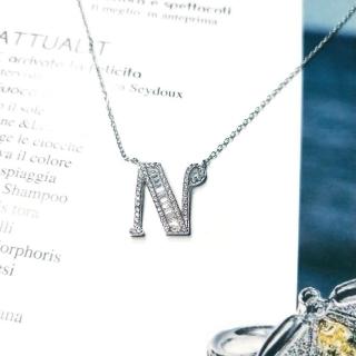 【I JEWELRY】高級手工純銀訂製系列 歐美流行英文N字母頂級鋯石雙戴Y型純銀長項鍊(附純銀保證卡 Y字鍊)