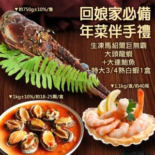 【優鮮配-中秋烤肉】回娘家必備年菜伴手禮(龍蝦+熟白蝦+大連盤鮑)