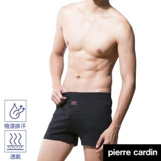 【pierre cardin 皮爾卡登】任選_吸濕排汗針織開襟平口褲(速達單件-黑)