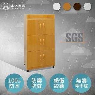 【本木】防潮/抗蟲蛀/可水洗 緩衝塑鋼三層三開門置物碗盤櫃/收納櫃