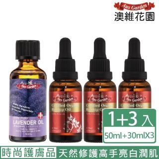 【Ausgarden 澳維花園】真實薰衣草精油50ml+玫瑰果精粹油30mlX3入(天然修護高手 亮白潤肌 OUT歲月痕跡)