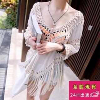 【AS 梨卡】罩衫 外搭 度假沙灘流蘇鉤花鏤空外衣C60249