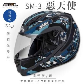 【SOL】SM-3 惡天使 消光灰/藍 可樂帽 MD-04(可掀式安全帽│機車│內襯│鏡片│竹炭內襯│輕量化│GOGORO)