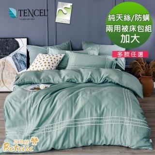【Betrise】加大 線條系列 300織紗100%純天絲防蹣抗菌四件式兩用被床包組(多款任選)