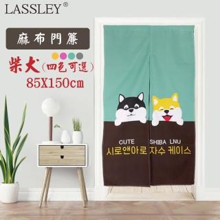 【LASSLEY】麻布門簾-柴犬(四色可選)85x150cm(韓式 韓風 韓文 雙開 門帘 布簾 台灣製造)