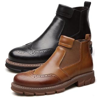 【JP Queen New York】牛津點點雕花彈性真牛皮短版馬丁靴(2色可選)