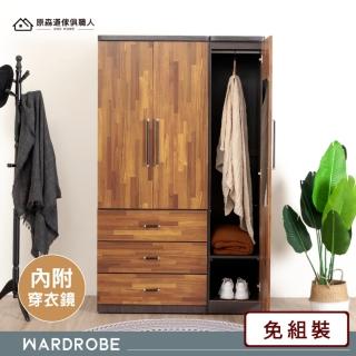 【原森道】4x7尺木心板三抽雙桿衣櫃/衣櫥(附鏡子-拼接集層色)