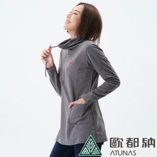 【ATUNAS 歐都納】女款平價奢華長袖保暖立領衫(A2PS1911W灰/吸溼排汗/柔軟刷毛/透氣舒適/休閒長版衫)