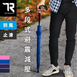 【TDN】避震減壓5段式休閒傘黑膠晴雨傘自動直傘 傘杖(可調式自動手杖傘拐杖型手把登山防滑傘A7600)