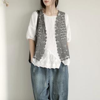 【JC Collection】全棉柔舒䁻花鏤空復古優雅氣質馬甲背心(深灰色)