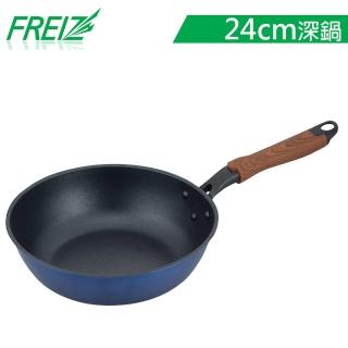 【FREIZ】日本品牌新式特種塗層木紋柄深形平底鍋(24cm)