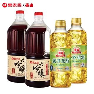 【泰山x萬家香】料理必備調味4件組(萬家香大吟釀醬油1500ml*2+泰山芥花油1L*2)