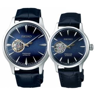 【SEIKO 精工】PRESAGE 經典開芯系列機械對錶-藍(4R38-01N0B/4R38-01Y0B)