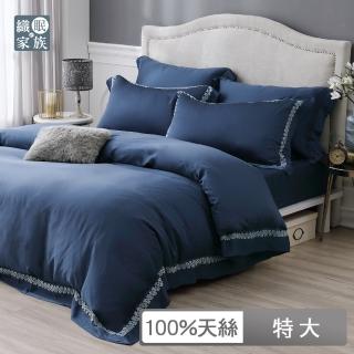 【織眠家族】60支100%天絲鏤空四件式被套床包組茱諾深藍(特大)