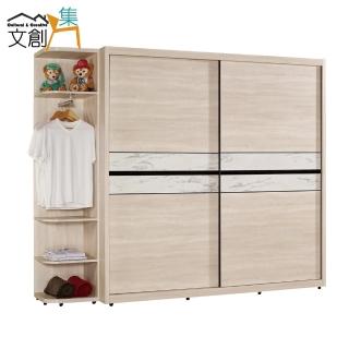 【文創集】菲莉 現代6.4尺多功能推門衣櫃/收納櫃組合(衣櫃+側邊櫃)