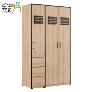 【文創集】波德 現代4尺三抽雙吊衣櫃/收納櫃組合