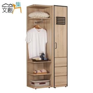【文創集】波德 現代2.9尺開門三抽衣櫃/收納櫃組合(開門衣櫃+側邊櫃)