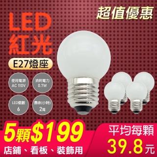 【朝日光電】6LED球型燈泡E27紅光-5顆(LED燈泡)