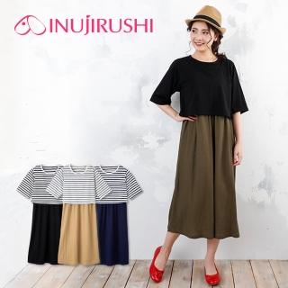 【日本犬印】假兩件式哺乳連身裙-M~L-黑/膚/綠/藍色(產前~產後用)