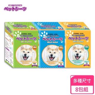 【狗樂園】寵物尿布 8包組 S100入/M50入/L25入(尿布墊 寵物尿布墊 尿片 超瞬吸 不回滲 抗菌 除臭)