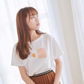 【Abbie】韓款寬鬆顯瘦亮片乾燥花純棉短袖上衣(現貨熱銷中)
