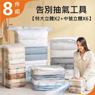 【太力】新一代免抽氣手壓真空收納壓縮袋 整理袋(2特大立體+6中號立體)