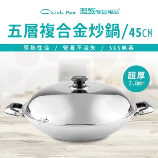 【Chieh Pao 潔豹】304不鏽鋼五層複合金康潔炒鍋 雙耳45CM(2.8mm極厚 台灣精品)