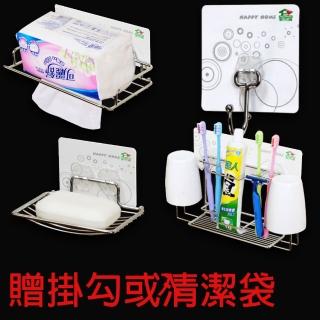 【家而適】無痕浴室收納超值組(牙刷架+衛生紙架+香皂架+掛勾-大)