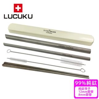 【瑞士 LUCUKU】純鈦筷子+純鈦吸管12mm+8mm