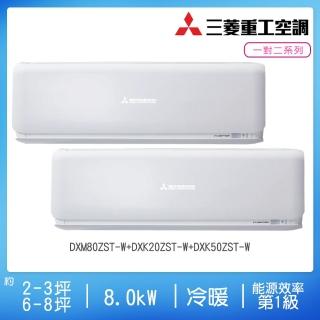 【三菱重工】3坪+8坪一級變頻冷暖一對二分離式空調(DXM80ZMT-S1+DXK20ZST-W+DXK50ZST-W)