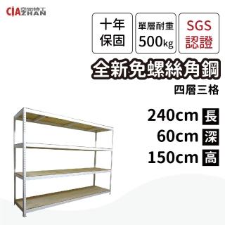 【空間特工】工業風免螺絲四層角鋼架 2色(240x60x150cm/置物架/層架/收納架/展示架/DIY組合架)