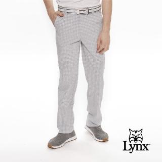 【Lynx Golf】男款日本進口布料橫條暗紋平口休閒長褲(灰色)